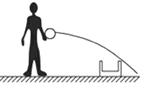 在一次投球游戏中,小刚同学调整好力度,将球水平抛向放在地面的小桶中,结果球沿如图所示划着一条弧线飞到小桶的右方.不计空气阻力,则下次再投时,他可能作出的调整为( )![]()