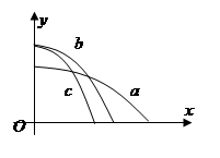如图,x轴在水平地面内,y轴沿竖直方向。图中画出了从y轴上沿x轴正向抛出的三个小球a、b和c的运动轨迹,其中b和c是从同一点抛出的,不计空气阻力,则:[ ]![]()