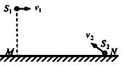 在水平地面上M点的正上方某一高度处,将球S1以初速度v1水平向右抛出,同时在M点右方地面上N点处,将球S2以初速度v2斜向左上方抛出,两球恰在M、N连线的中点正上方相遇,不计空气阻力,则两球从抛出到相遇过程中( )![]()