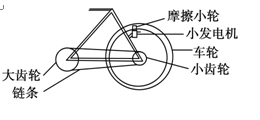 =1.0 cm的摩擦小轮,小轮与自行车车轮的边缘接触.当车轮转动时,因摩擦而带动小轮转动,从而为发电机提供动力.自行车车轮的半径R1=35 cm,小齿轮的半径