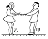 甲、乙两名溜冰运动员,M甲=80kg,M乙=40kg,面对面拉着弹簧秤做圆周运动的溜冰表演,如图所示,两人相距0.9m,弹簧秤的示数为9.2N,下列判断中正确的是( )![]()