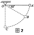绳子一端固定,另一端拴一小球,如图2所示,小球分别从水平位置A点和与水平成30°的B点无初速释放,则经过最低点C时,绳子的张力之比是![]()