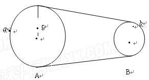 如图所示,皮带轮的半径RA=2RB,A轮半径上一点c和圆心距离为1/2RA,a、b分别为A轮和B轮边缘上的点,当皮带轮工作时,皮带与轮不打滑,则a、b、c三点向心加速度之比