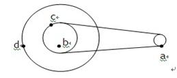 如图14所示,一皮带传动装置,右轮的半径为r,a是它边缘上的一点。左侧是一轮轴,大轮的半径为4r,小轮的半径为2r。b点在小轮上,到小轮中心的距离为r,c点和d点分别位于小轮和大轮的边缘上。若在传动过程中,皮带不打滑。则 ( )![]()
