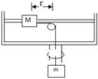 如图所示,质量为M的物体穿在离心机的水平光滑滑杆上,M用绳子与另一质量为m的物体相连。当离心机以角速度ω旋转时,M离转轴轴心的距离是r。当ω增大到原来的2倍时,调整M离转轴的距离,使之达到新的稳定状态,则( )![]()