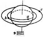 如图所示,a为放在赤道上的物体;b为沿地球表面附近做匀速圆周运动的人造卫星;c为地球同步卫星。以下关于a、b、c的说法中正确的是:( )![]()