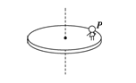 如图所示,有一个水平大圆盘绕过圆心的竖直轴匀速转动,小强站在距圆心为r处的P点不动,关于小强的受力下列说法正确的是 ![]()