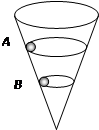 一个内壁光滑的圆锥筒的轴线是竖直的,圆锥固定,有质量相同的两个小球A和B贴着筒的内壁在水平面内做匀速圆周运动,如图所示,A的运动半径较大,则 ( )![]()