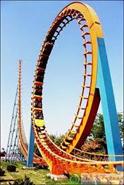 | A.车通过最高点时人处于倒坐状态,全靠保险带拉住,没有保险带,人一定就会掉下来 |