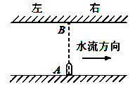 江中某轮渡站两岸的码头A和B正对,如图所示,水流速度恒定且小于船速.若要使渡船从A沿直线运动到B,则船在航行时应( )![]()