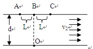 一船在静水中的速度大小恒定为v1,水流速度的方向沿着河岸向右且大小恒定为v2,且v1>v2。河岸宽度恒定为d。小船从O点开始渡河,图中OB垂直于河岸,AB=BC=L。已知当小船划行方向垂直于河岸时,小船正好航行到C点。下列说法中正确的是( )![]()