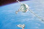 | A.绳系卫星在航天器的前上方 |