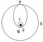 发射地球同步卫星时,先将卫星发射到近地圆轨道1,然后点火,使其沿椭圆轨道2运行,最后再次点火,将卫星送入同步圆轨道3。轨道1、2相切于Q点,轨道2、3相切于P点,如图所示。则当卫星分别在1、2、3轨道上正常运行时,下列说法中正确的是![]()