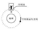 在圆轨道上运行的国际空间站里,一宇航员A静止(相对空间舱)“站”于舱内朝向地球一侧的“地面”B上,如图所示,下列说法正确的是![]()