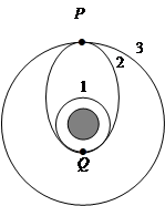将卫星发射至近地圆轨道1(如上图所示),然后再次点火,将卫星送入同步轨道3。轨道1、2相切于Q点,2、3相切于P点,则当卫星分别在1、2、3轨道上正常运行时,以下说法正确的是 ( ) ![]()