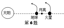 2010年1月30日,出现了稀有的天文现象:太阳、地球、月亮和火星处在同一直线上,该天月亮距地球最近.已知火星到太阳的距离约为地球到太阳距离的1.5倍,下列说法正确的是( )![]()