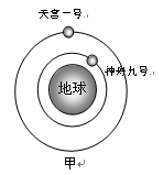 2012年6月18日,载有三名航天员的神舟九号飞船于下午14时许与天宫一号自动交会对接。对接完成、两飞行器形成稳定运行的组合体后,航天员于17时多进入天宫一号目标飞行器,这实现了中国载人航天历史上首次对一个在轨运行的航天器的拜访和驻留。假如神舟九号与天宫一号对接前所处的轨道如图甲所示,当它们处于图甲所示的轨道运行时,下列说法正确的是( )![]()