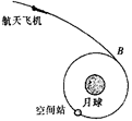 我国未来将建立月球基地,并在绕月轨道上建造空间站.如图所示,关闭动力的航天飞机在月球引力作用下向月球靠近,在B处重新点火改变速度至与空间站速度相同,并与空间站对接,已知空间站绕月轨道半径为r,周期为T,万有引力常量为G,下列说法中正确的是( )![]()