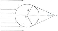 宇宙飞船以周期为T绕地地球作圆周运动时,由于地球遮挡阳光,会经历“日全食”过程,如图所示。已知地球的半径为R,地球质量为M,引力常量为G,地球处置周期为T0,太阳光可看作平行光,宇航员在A点测出的张角为