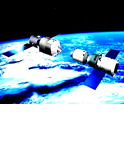 2011年11月3日,神舟八号与天宫一号完美“牵手”,成功实现交会对接。交会对接飞行过程分为“远距离导引”、“自主控制”、“对接”、“组合体飞行”和“分离撤离”等阶段,图示为“远距离导引”阶段。对接任务完成后,神舟八号飞船返回位于内蒙古自治区苏尼特右旗以西阿木古朗草原的主着陆场。则下列说法正确的是![]()