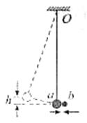 如图所示的单摆,摆球a向右摆动到最低点时,恰好与一沿水平方向向左运动的粘性小球b发生碰撞,并粘在一起,且摆动平面不便。已知碰撞前a球摆动的最高点与最低点的高度差为h,摆动的周期为T,a球质量是b球质量的5倍,碰撞前a球在最低点的速度是b球速度的一半。则碰撞后![]()