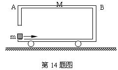 如图所示,质量为M,长为L的车厢静止在光滑水平面上,此时质量为m的木块正以水平速度v0从左边进入车厢底板向右运动,车厢底板粗糙,m与右壁B