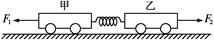 | D.两车的速度减小到零时,弹簧的弹力大小等于外力F1、F2的大小 |