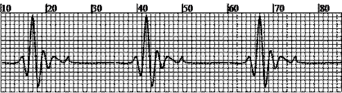 某人在医院做了一次心电图,结果如图所示。如果心电图仪卷动纸带的速度为1.5m/min,图中方格纸每小格长1mm,则此人的心率为![]()