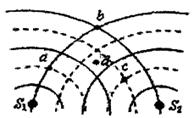 是两个相干波源,它们振动同步且振幅相同。实线和虚线分别表示在某一时刻它们所发出的波的波峰和波谷。关于图中所标的