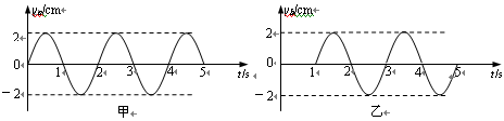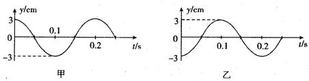 甲、乙两图分别表示一简谐横波在传播方向上相距3.0m的两质点的振动图象,如果波长大于1.5m,则该波的波速大小可能是 ( )![]()
