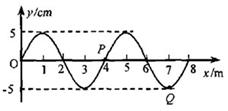 如图为一列在均匀介质中传播的简谐横波在t="4" s时刻的波形图,若已知波源在坐标原点O处,波速为2 m/s,P、Q分别是平衡位置为4m和7m处的两质点,则( )![]()