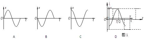 弹簧振子做简谐运动,其位移x与时间t的关系如图所示,由图可知:![]()