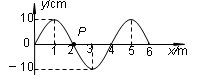 如图是一列简谐波在t=0时的波形图,介质中的质点P沿y轴做简谐运动的表达式为y=10sin5πt cm。关于这列简谐波,下列说法中正确的是 ( ) ![]()