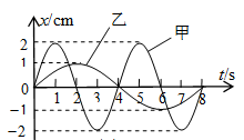 | B.t=2s时,甲摆的重力势能达到最大,乙摆的动能达到最大 |