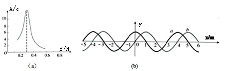 如图,(a)为一波源的共振曲线,(b)图中的a表示该波源在共振状态下的振动形式沿x轴传播过程中形成的机械波在t=0时刻的波形曲线。则下列说法错误的是![]()