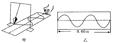 图甲是利用沙摆演示简谐运动图象的装置.当盛沙的漏斗下面的薄木板被水平匀速拉出时,做简谐运动的漏斗漏出的沙,在板上显示出沙摆的振动位移随时间变化的关系曲线.已知木板被水平拉动的速度为0.20 m/s,图乙所示的一段木板的长度为0.60 m,则这次实验沙摆的摆长大约为(取g=π2)( )![]()