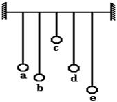 如图所示,一根绷紧的绳子系5个单摆,其中a、d摆长相等,原来 5个 单摆均处于静止。今先使a振动,发现其余4个单摆随之开始振动,以下说法正确的是( )![]()