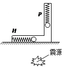 某地区地震波中的横波和纵波传播速率分别约为4km/s和9km/s。一种简易地震仪由竖直弹簧振子P和水平弹簧振子H组成,如图1所示。在一次地震中,震源在地震仪下方,观察到两振子相差5s开始振动,则![]()