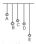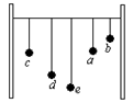 如图所示,在一根张紧的水平绳上,悬挂有 a、b、c、d、e五个单摆,让a摆略偏离平衡位置后无初速释放,在垂直纸面的平面内振动;接着其余各摆也开始振动。下列说法中正确的有:( )![]()