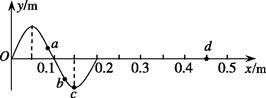 如图所示为一列沿x轴正方向传播的简谐横波在t时刻的波形图。已知该波的周期为T,a、b、c、d为沿波传播方向上的四个质点,则下列说法中正确的是![]()