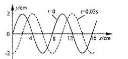 一列简谐横波在t=0时刻的波形如图中的实线所示,t=0.02s时刻的波形如图中虚线所示。若该波的周期T大于0.02s,则该波的传播速度可能是![]()