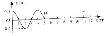 一列简谐横波沿x轴正向传播,传到M点时波形如图所示,再经0.6s,N点开始振动,则该波的振幅A和频率f为![]()