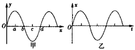 一列简谐波沿x轴正方向传播,某时刻波形图如图甲所示,a、b、c、d是波传播方向上的四个振动质点的平衡位置.如再过