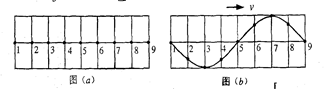 在均匀介质中选取平衡位置在同一直线上的9个质点,相邻两质点的距离均为L,如图(a)所示.一列横波沿该直线向右传播,t=0时到达质点1,质点1开始向下运动,经过时间Δt第一次出现如图(b)所示的波形.则该波的( ) ![]()