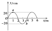 如图所示为t=0时刻的波形图,波的传播方向平行于x轴。质点A位于xA=2m处,质点B位于xB=3m处。t=2s时,质点B第一次出现在波峰位置;t=3s时,质点A第一次出现在波峰位置。则下列说法不正确的是![]()