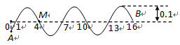 (2012年2月湖南部分学校联考)一列简谐横波,A为振源,在B点刚开始振动时的图象如图所示.图中数据单位都是m,已知波的传播速度为10m/s,下列说法正确的是_________(填入选项前的字母代号)![]()