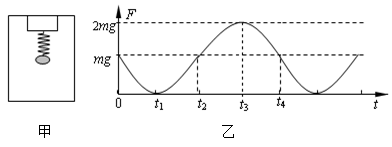 如图甲所示,在升降机的顶部安装了一个能够显示拉力的传感器,传感器下方挂上一轻质弹簧,弹簧下端挂一质量为m的小球,若升降机在运行过程中突然停止,并以此时为零时刻,在后面一段时间内传感器显示弹簧弹力F随时间t变化的图象如图所示,g为重力加速度,则( )![]()
