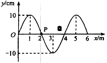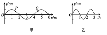 一列简谐横波在t=0时的波形图如图所示。介质中x=2m处的质点P沿y轴方向做简谐运动的表达式为y=10sin(10πt+π)cm。另一质点Q位于x=4m处。![]()