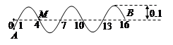 一列简谐横波,A为振源,在B点刚开始振动时的图象如图所示.图中数据单位都是m,已知波的传播速度为10m/s,下列说法正确的是( )![]()