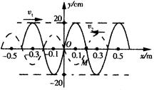 | C.由图示时刻开始,再经甲波周期的1/4,质点M的位移为20 cm |